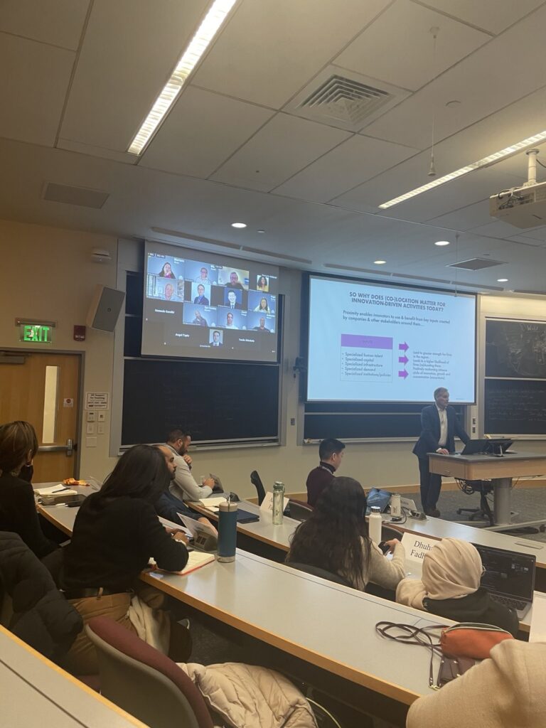 Однією з найяскравіших подій стала моя перша лекція в межах курсу 15.364 Innovation Ecosystems (iECO) for Regional Entrepreneurial Acceleration Leaders (4REAL), який викладає Dr. Phil Budden. Курс є частиною треку Entrepreneurship & Innovation (E&I) і побудований на підході systems thinking (системного мислення). У центрі уваги — інноваційні екосистеми як взаємодія ключових стейкхолдерів: університетів, бізнесу, держави, громад та інституцій.